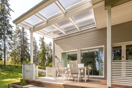 Terttu ja Juhani Pakarisen koti Lahdessa sai hämäränä, marraskuisena päivänä upouuden, lasitetun terassin. Katetusta terassista on tullut lähes Pakaristen olohuone, jossa he viettävät aikaansa aina helmikuusta pitkälle syksyyn.